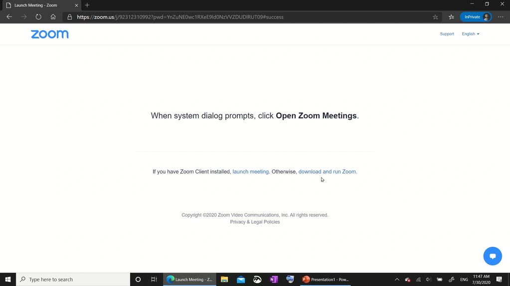 Instead of selecting "launch meeting," click "download and run Zoom."